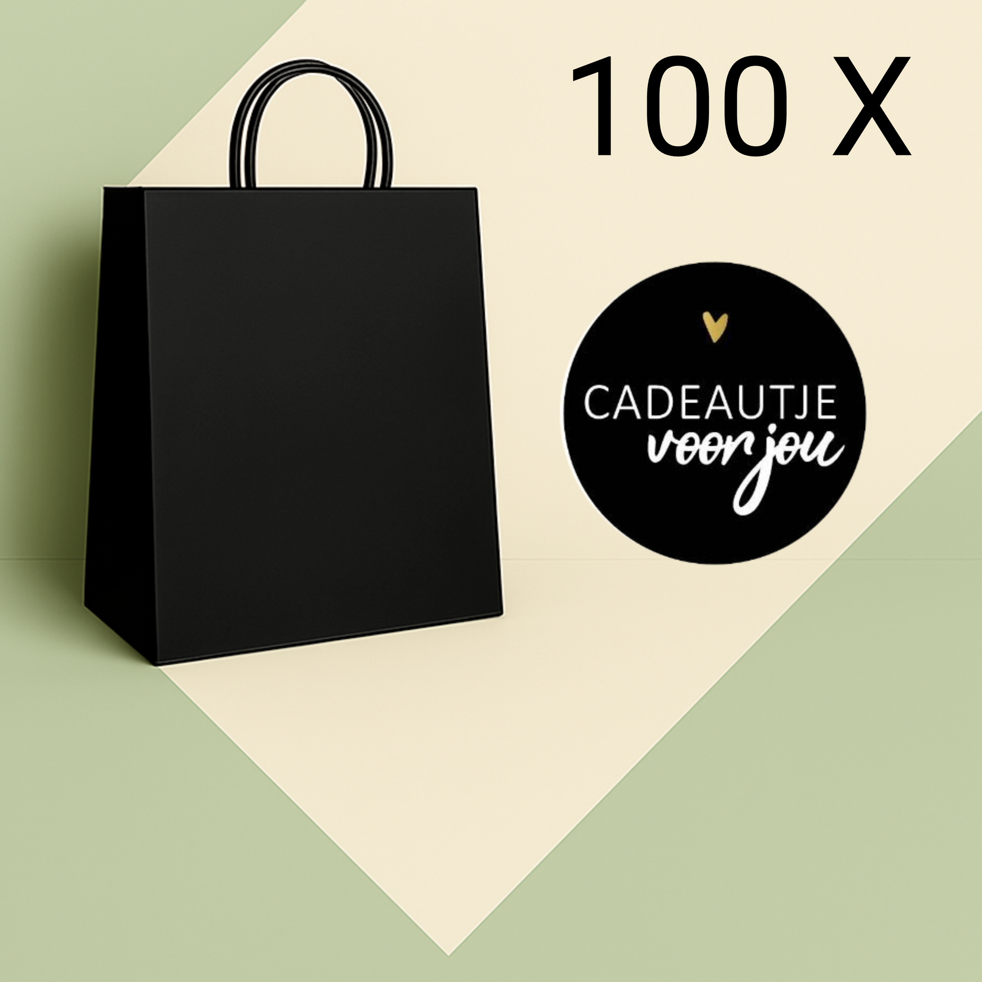 HGN Papieren Tasjes -100 zwarte Cadeautasjes van 22x18x8 cm-Incl 100 zwarte Stickers